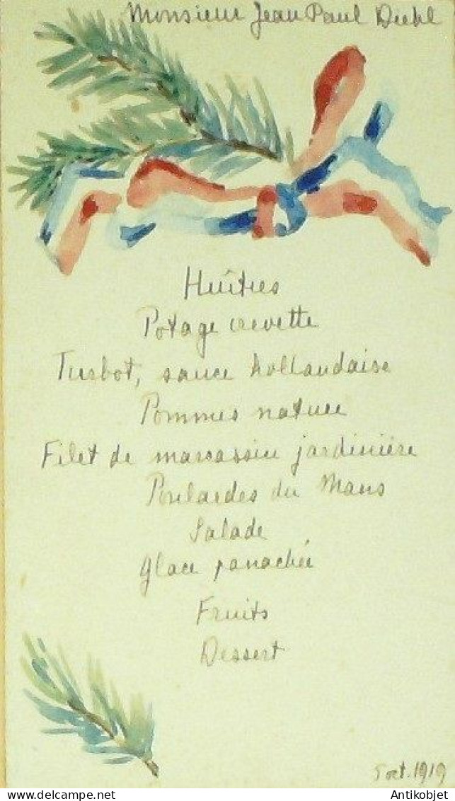 Menu illustre 1919 peint main