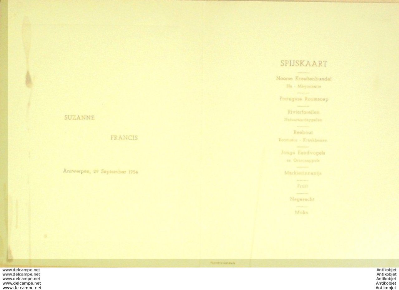 Menu illustre de Mariage Suzanne & Francis signe Renaudin Anvers 1954