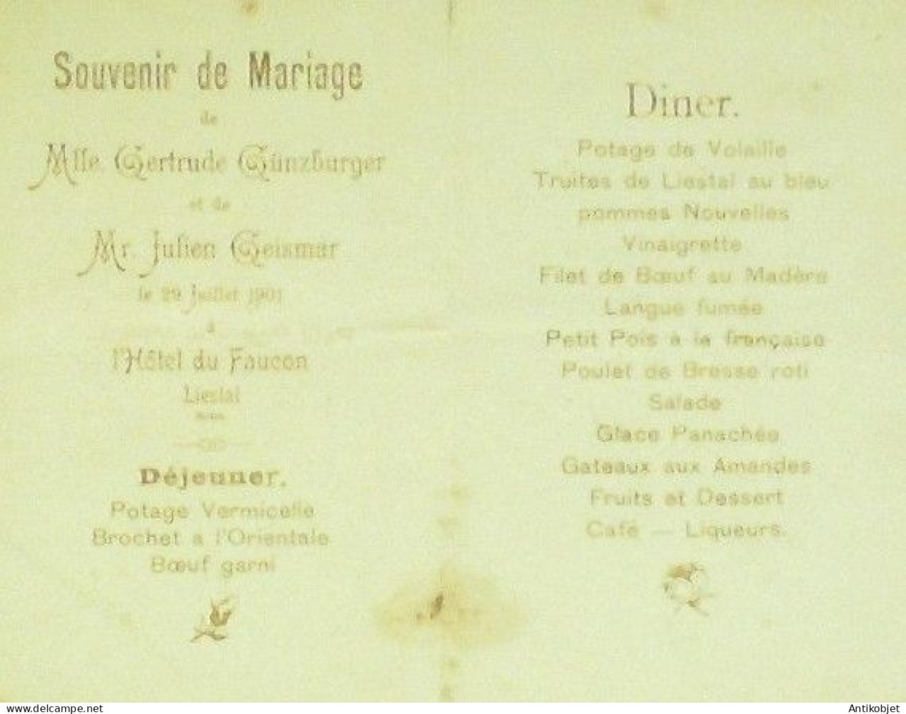 Menu illustre de noce Hôtel du Faucon Liestal (Suisse) 1902