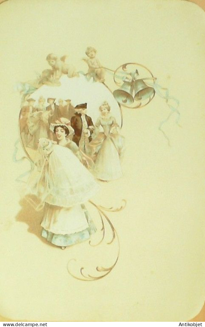 Menu vierge de Bapteme illustre d'anges et de villageois 1910