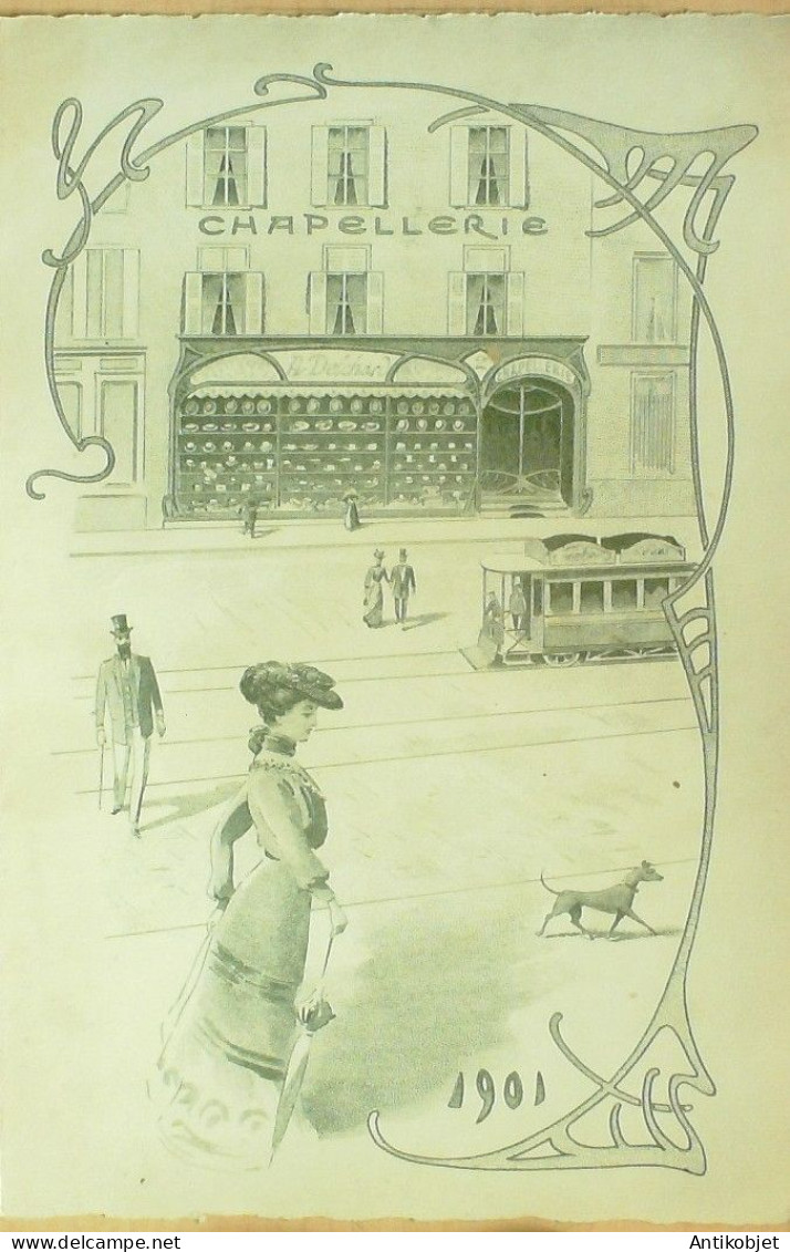 Menu vierge illustre publicitaire Chapellerie Delchard Nancy (54) 1901