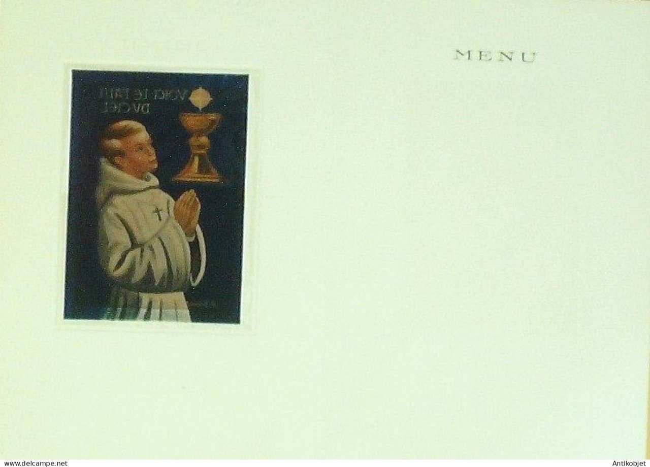 Menu vitrail illustrant un communiant en aube signe Dionet