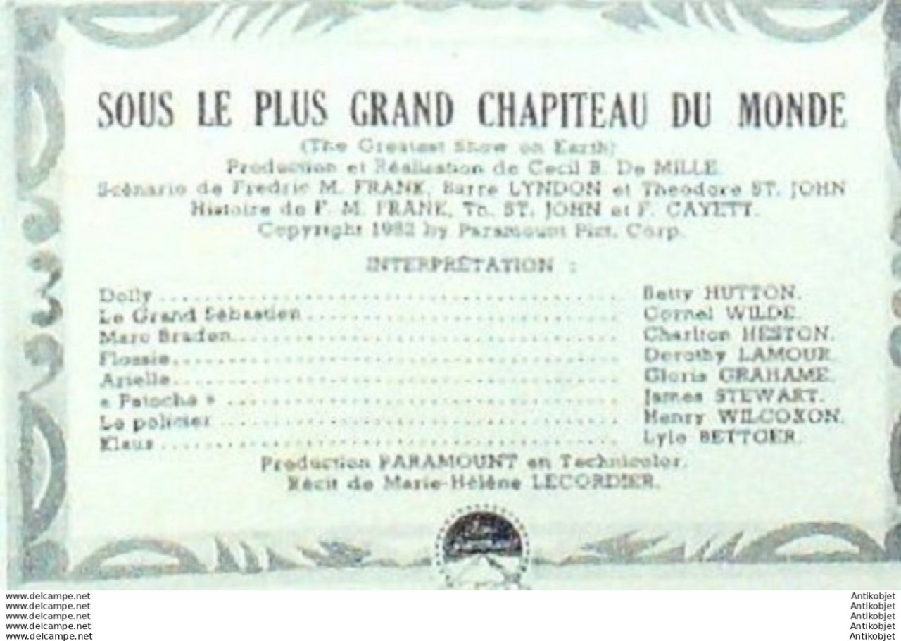 Mon Film 384 53-12-30 Sous le plus grand chapiteau du Monde Charlton Heston