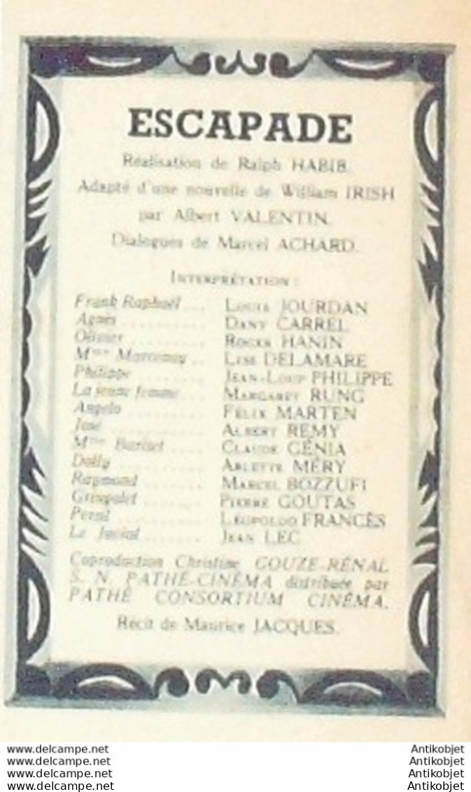 Mon Film 588 57-11-27 Escapade Dany Carrel June Thorburn Anne Vernon