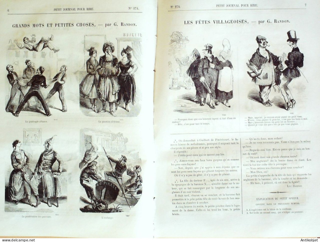 Reliure souple de 8 pages illustreees par de nombreux caricaturistes tels que Grevin, Gustave Dore, Marcelin, Randon, Lefils, Tali, Damourette, Riou, Gripp, Stop