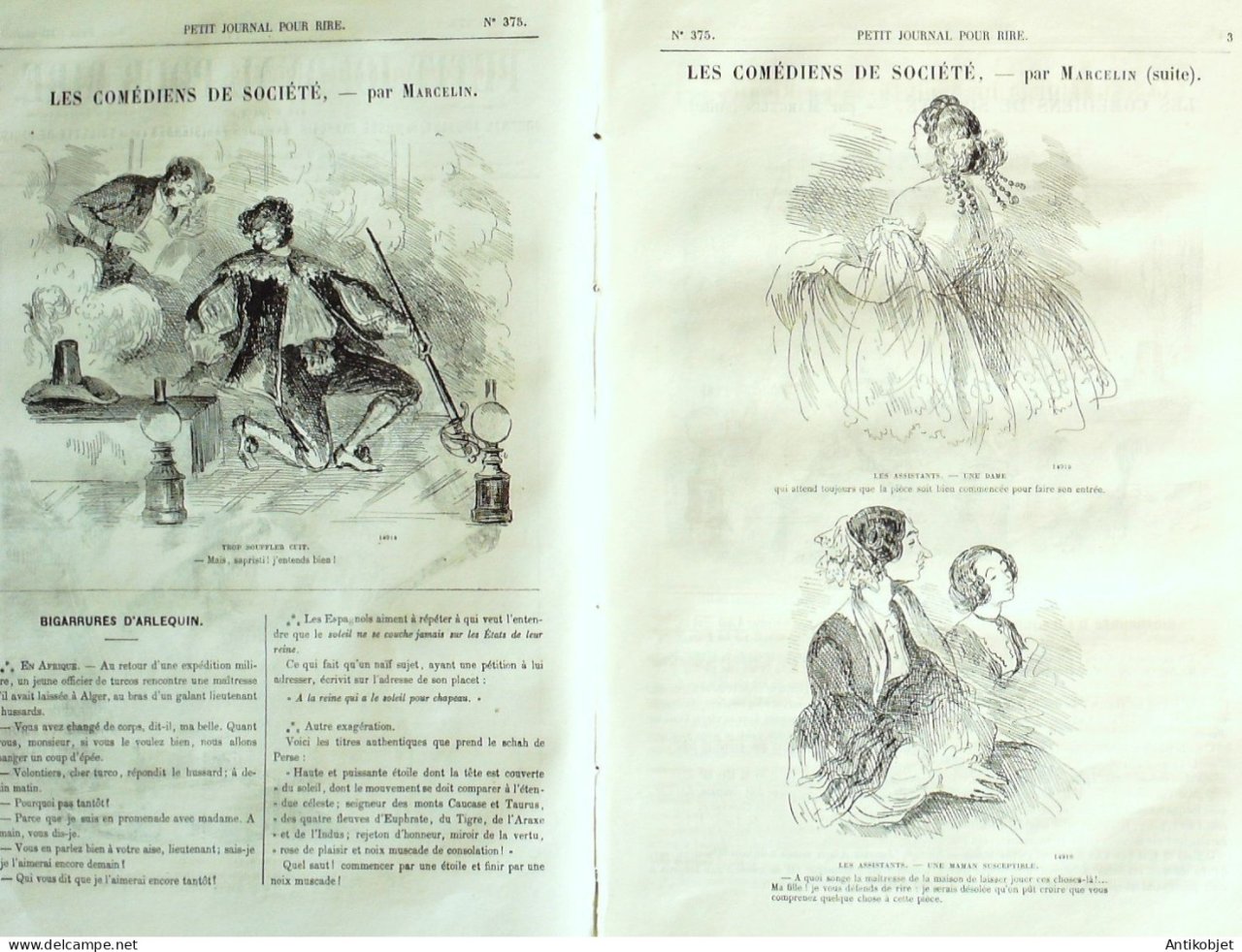 Petit journal pour Rire 1862 # 375 Les Comediens de societes Marcelin