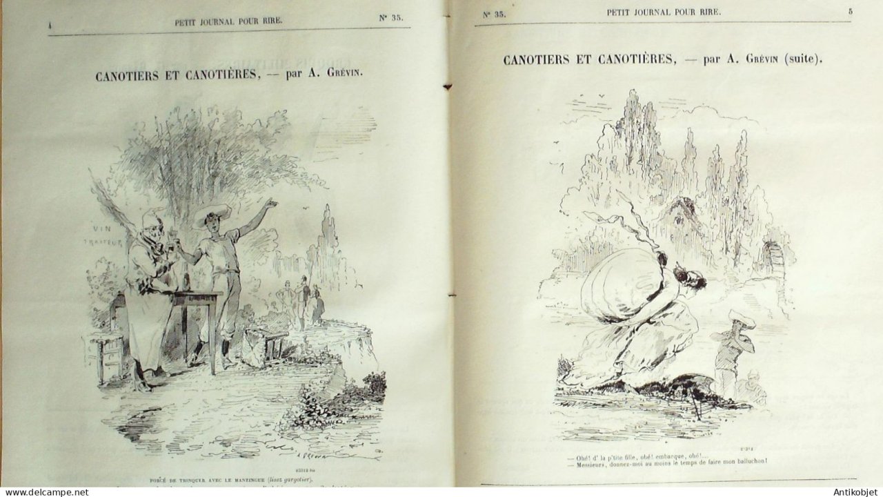 Petit journal pour Rire 1868 # 35 Canotiers et canotieres Grevin